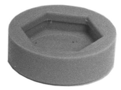 Smooth polymer cover fits over leveling bolt to protect floors.