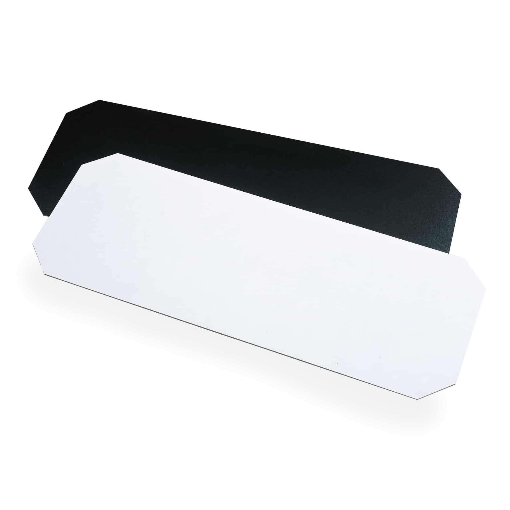 Hardboard mats prevent small items from falling through wire shelves. Fit between posts and level with top of shelf edge. Reversible, black and white. Packed individually.