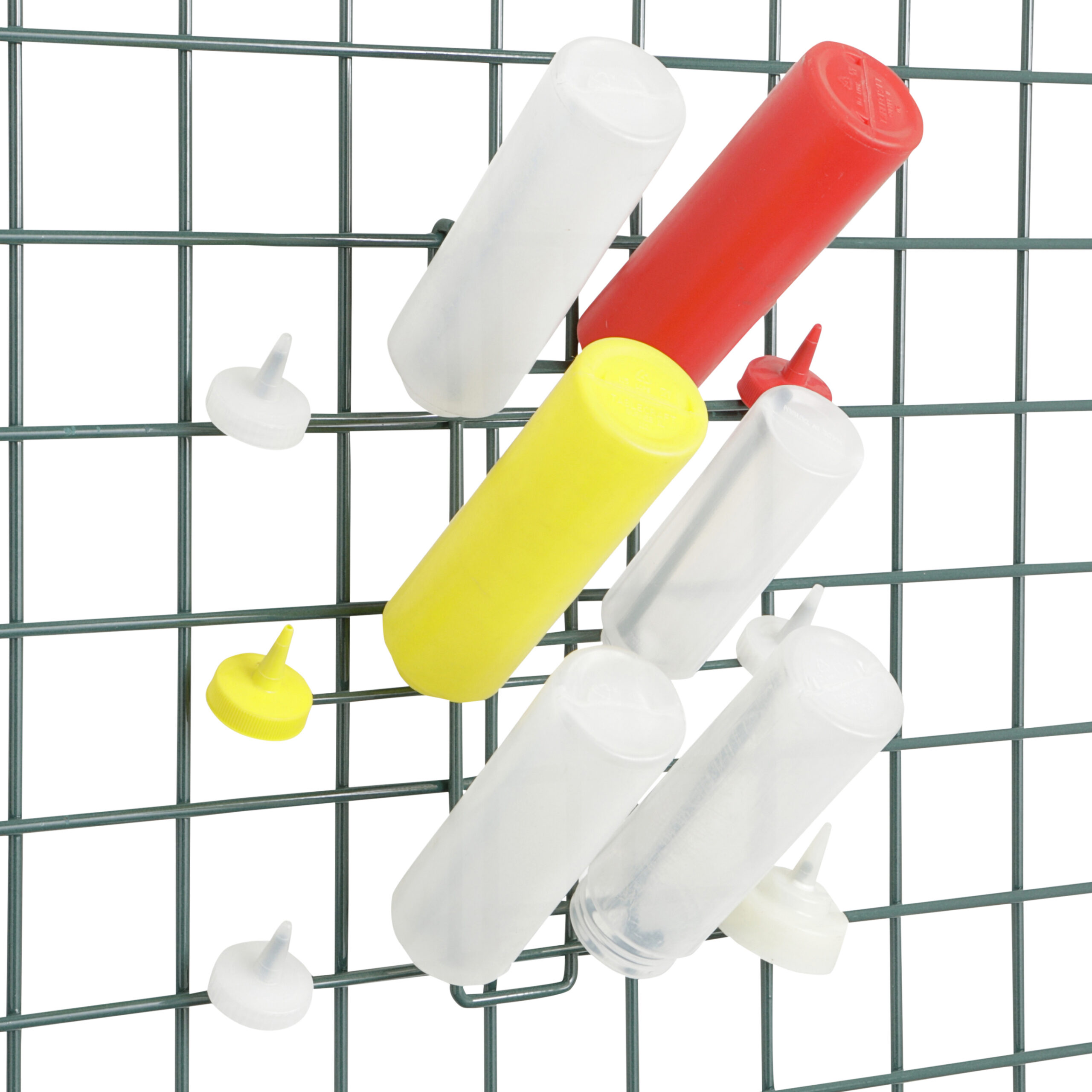 SmartWall 6-Prong Bottle Holders are designed to accommodate up to 6 squeeze bottles and lids. Metroseal finish is suitable for wet and damp enviroments and includes Microban antimicrobial product protection to inhibit the growth of bacteria, mold, mildew, and fungus that cause odors and product degradation. Quickly and easily attaches to any SmartWall wire grid.