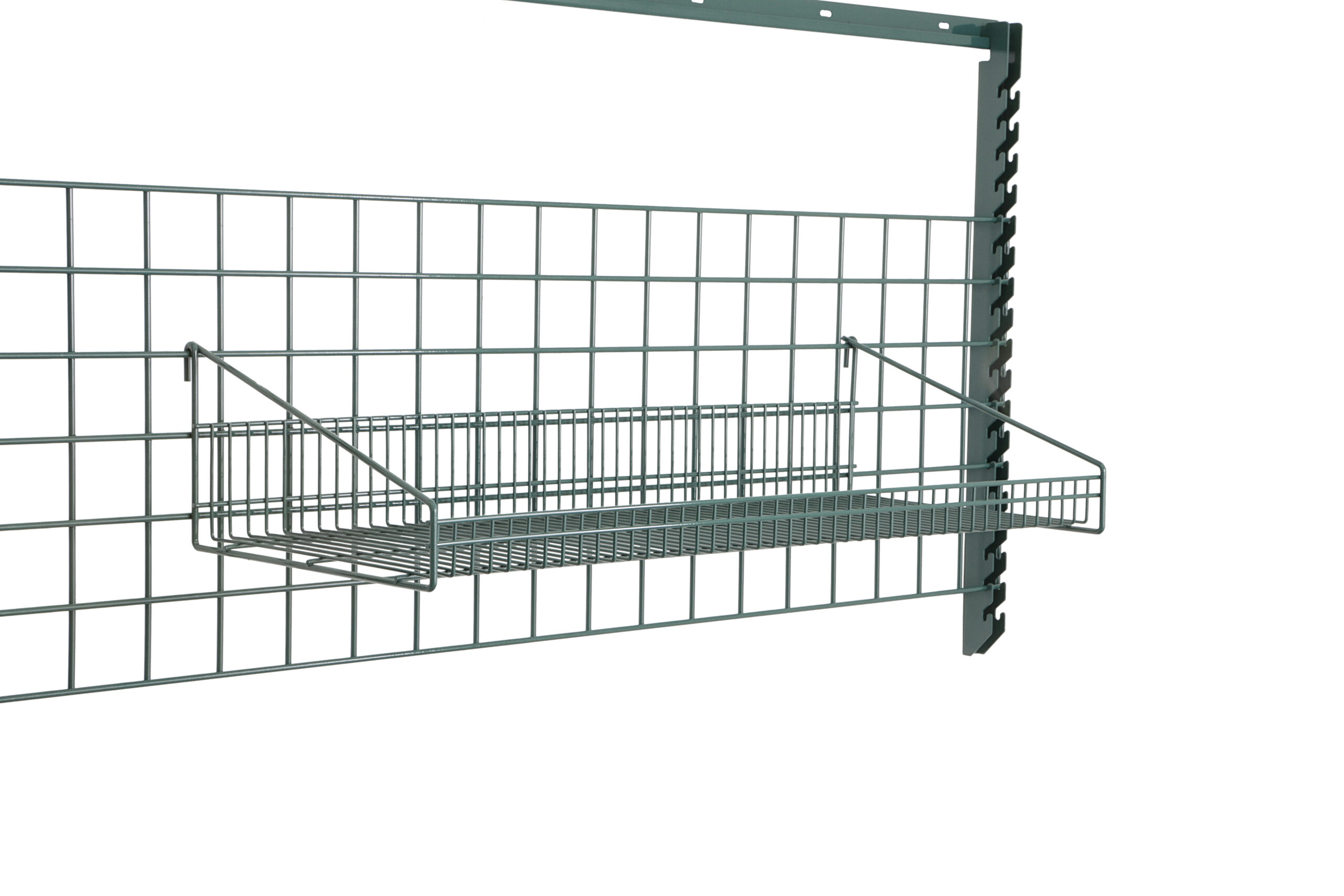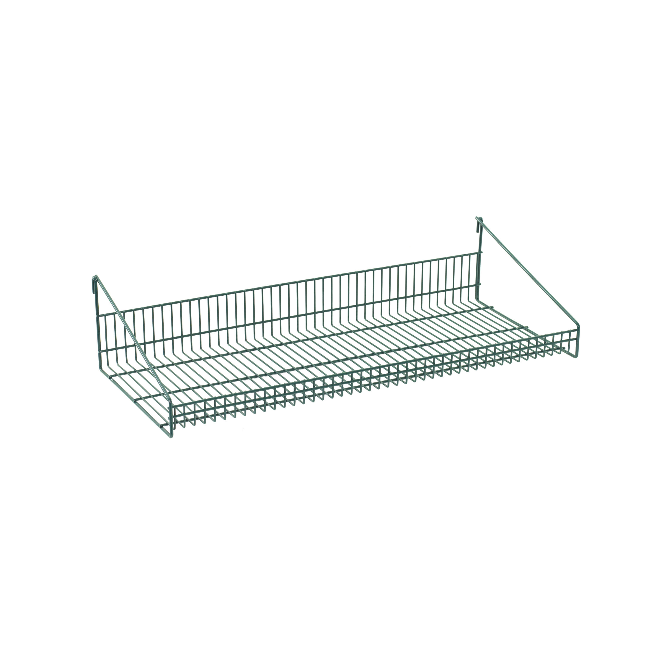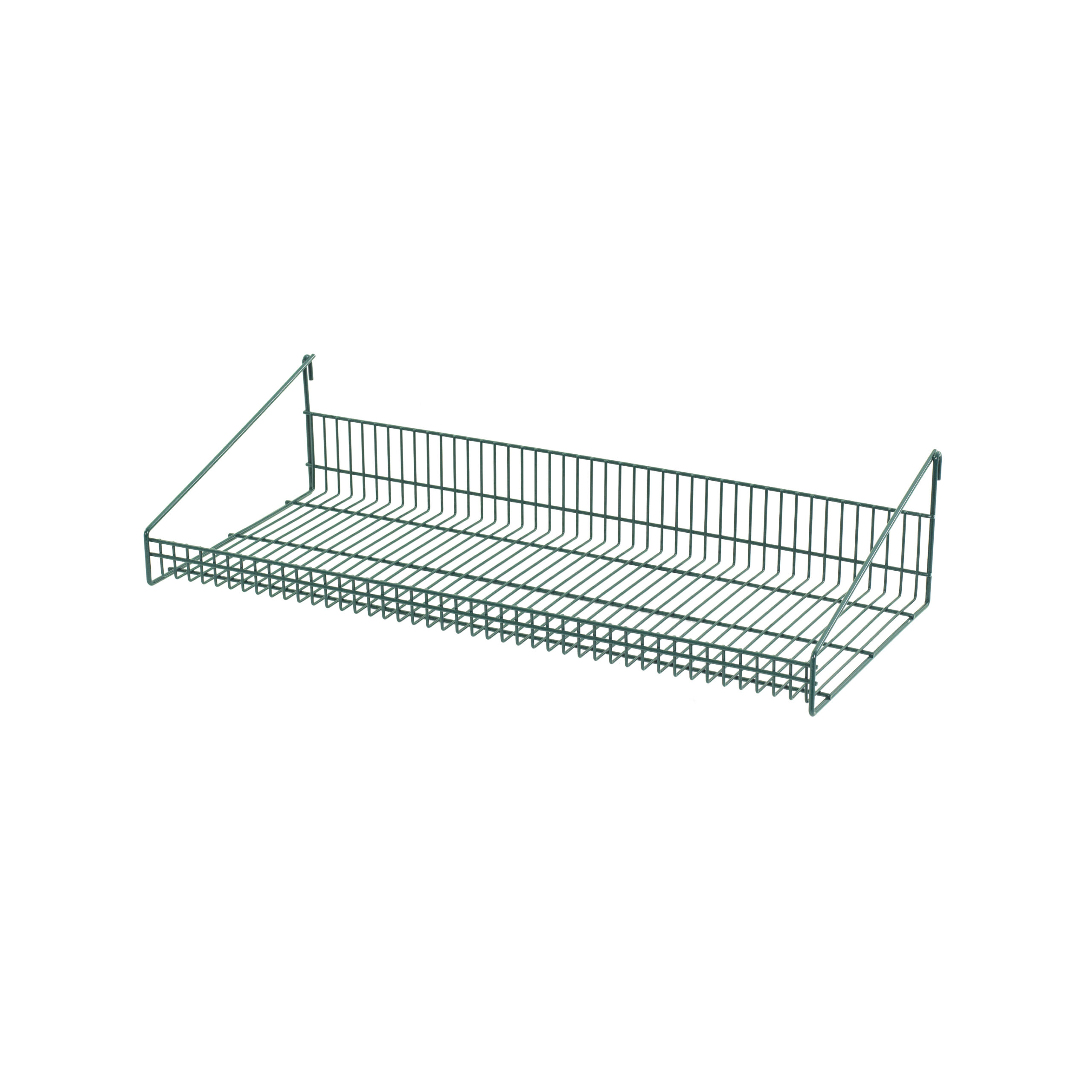 2″ high front retaining ledge helps to contain bulky items. 50 lbs. weight capacity. Attaches quickly and easily to SmartWall wire grids.