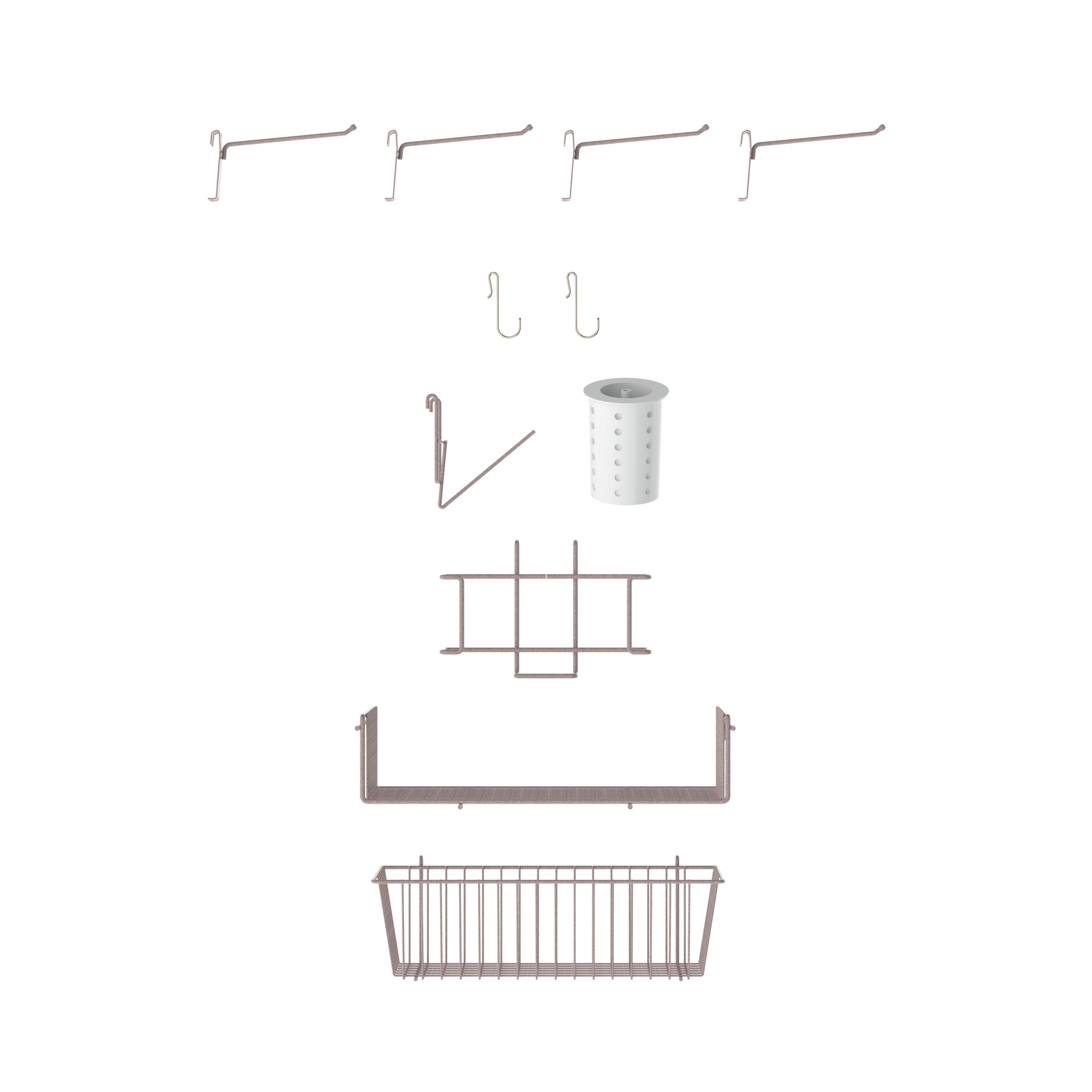 In busy commercial kitchens, every inch of space matters. The Metro SWA-PREP-K4 SmartWall Food Prep Accessory Kit is designed to improve efficiency and organization in food preparation areas. Use these curated accessories in conjunction with SmartWall wall shelving systems to keep prep tools off the work surface, promote food safety, reduce clutter, and free up valuable counter space for ingredient preparation. These prep accessories feature a Metroseal Gray epoxy finish with built-in Microban antimicrobial protection, which helps reduce bacteria, mold, and mildew that cause stains and odors. This Metro SmartWall Food Prep Accessory Kit includes: (1) small grid shelf, (1) large 5″ deep basket, (4) 6″ prong hooks, (2) small hooks, (1) glove box holder, (1) flatware cylinder, and (1) flatware cylinder holder. SmartWall wall tracks, uprights, shelves, grids, and other accessories sold separately.