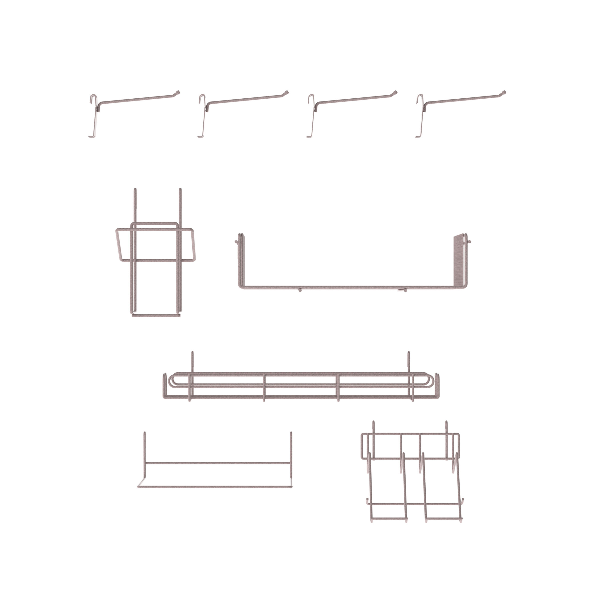 The Metro SWA-PIZZA-K4 SmartWall Pizza Prep Accessory Kit is designed to streamline pizza preparation by keeping frequently used items?such as pans, spices, bottles, and gloves?organized and easily accessible. Use in conjunction with SmartWall wall shelving systems to move storage off prep tables and onto the wall, helping to maintain a cleaner workspace and free up counter space for dough rolling, topping, and assembly. These pizza prep accessories feature a Metroseal Gray epoxy finish with built-in Microban antimicrobial protection, helping resist bacteria, mold, and mildew that cause stains and odors. This Metro SmartWall Pizza Accessory Kit includes: (1) pan holder, (1) spice rack, (1) squeeze bottle holder, (1) glove box holder, (1) small grid shelf, and (4) 6″ prong hooks. SmartWall wall tracks, uprights, shelves, grids, and other accessories sold separately.