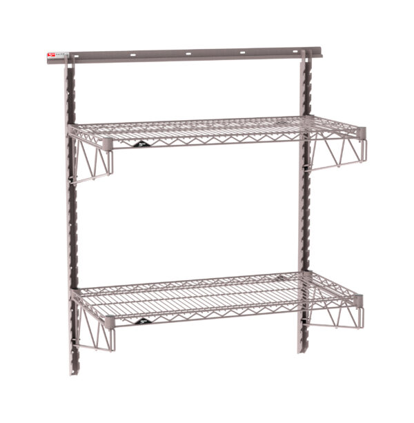 The Metro SW-1836K4-45-2TIER SmartWall 2-Tier Wall Shelving Kit provides reliable, wall-mounted storage for commercial kitchens, labs, healthcare facilities, and other demanding environments. Featuring Metroseal Gray epoxy-coated components with built-in Microban antimicrobial protection, this vertical storage solution offers long-term durability and comes with a 15-year warranty against rust and corrosion. This 2-tier kit includes two Metroseal Gray 18″ x 36″ wire shelves with Microban antimicrobial protection to help maintain cleaner surfaces. Designed to free up valuable floor space, SmartWall Wall Shelving mounts directly to the wall, keeping supplies organized and accessible while improving workflow in tight or high-use areas. The Metro SW-1836K4-45-2TIER SmartWall 2-Tier Wall Shelving Kit includes: (1) 40″ wall track, (2) 45″ uprights, (4) single shelf supports, (2) 18″ x 36″ wire shelves, and (8) corner plugs. Wall grid and accessories are not included.
