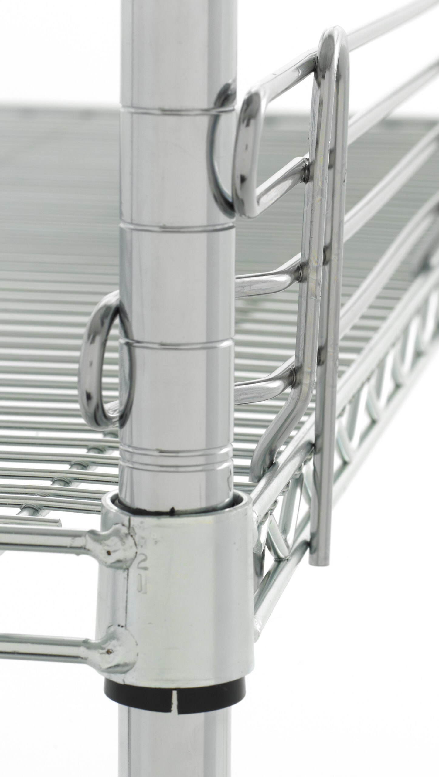 Prevent items from protruding or falling from shelves. Ledges may be stacked to form an 8″ (203mm) or higher barrier. Compatible with wire shelving only.