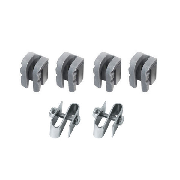 Replacement hardware for Super Erecta enclosure panels. Kit includes two stainless steel security S-hooks and four polymer clips.