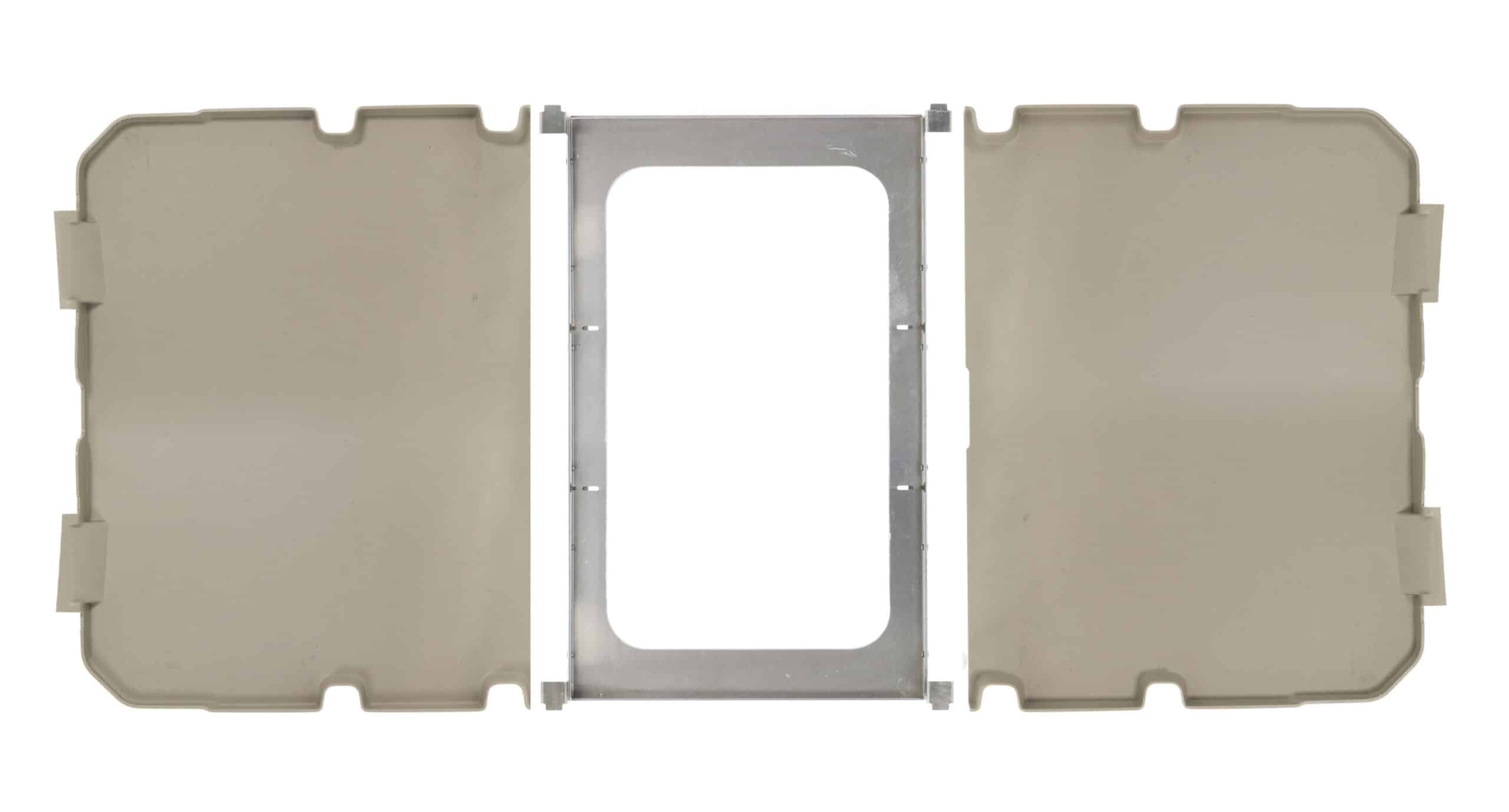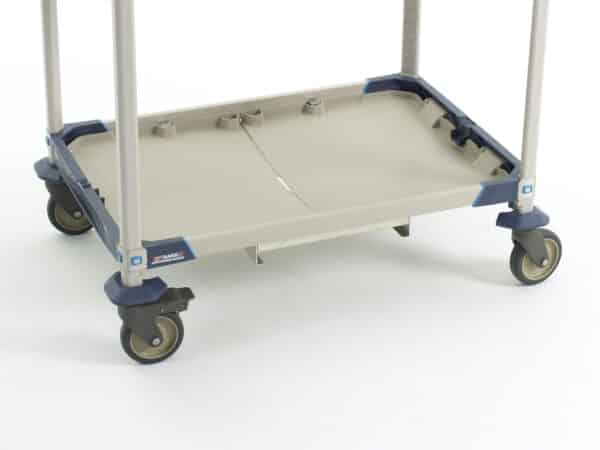 The patent-pending XDRIP Drip Tray must be mounted to a MetroMax i shelf frame or shelf. Drip Tray assembly adjusts to fit 24×36″ and 24×48″ (610×914 or 610x1219mm) sizes. Consists of (2) solid polymer chutes and (1) mounting frame. Collection pan is not included. The mounting frame is designed to hold a full size steam pan or GN 1/1, preferably 2-1/2″ or 4″ tall (64 or 102mm).